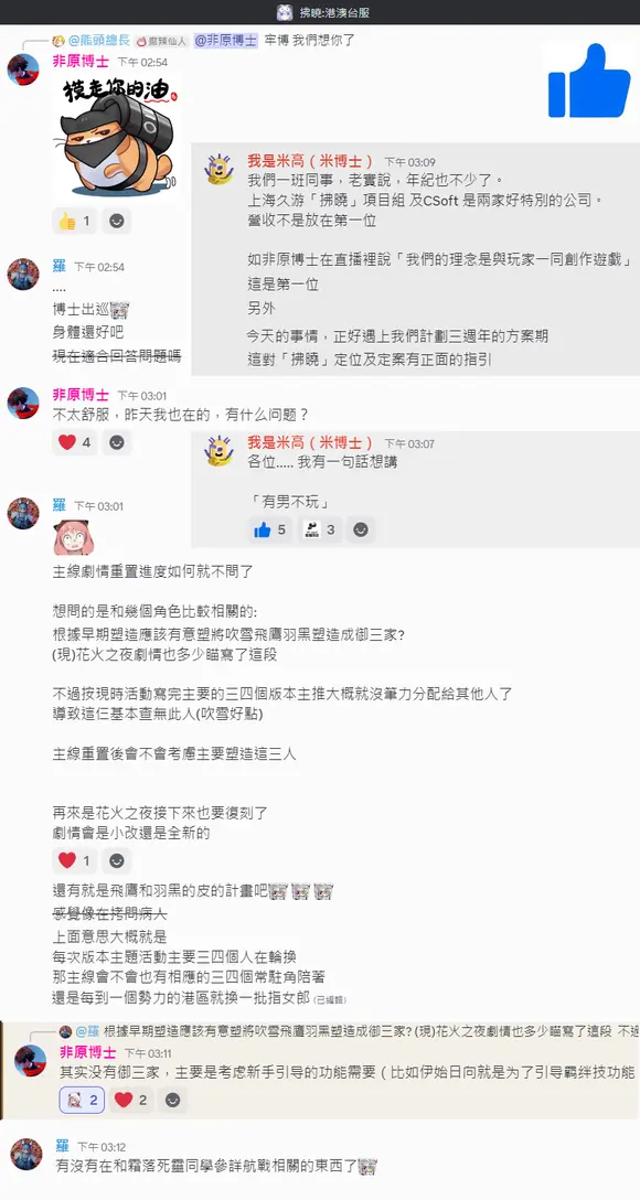 港澳台服群油报由拂晓胜利之刻吧吧友恆朔流光整理和制作,内容主要由拂晓港澳台服群的聊天内容组成,其中有许多关于拂晓制作组的相关消息与小彩蛋,大家且看且珍惜~