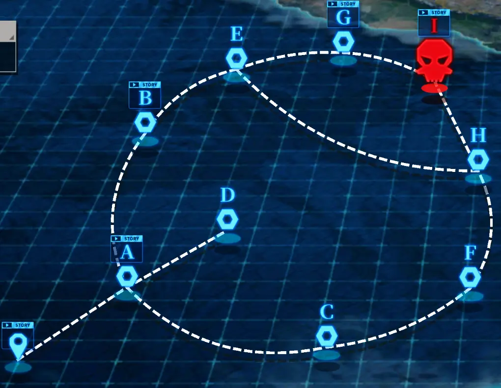 初始线路:ACEGIKLO,GK两点可利用带路条件跳过但不建议