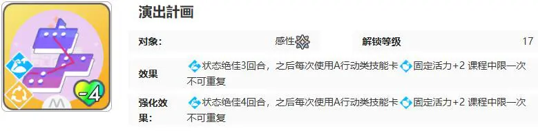 核心卡3:演出計画(不可重复,使用后除外) 4费,强化后3费。比起上面这两位低了一档,但却是萌新第一个解锁的绝好卡,相当亲民。