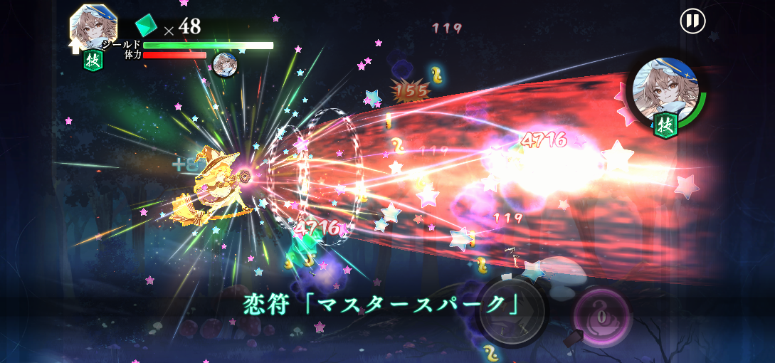 [奇妙的魔法使]雾雨魔理沙的激光属于扩散型,能够覆盖屏幕上大范围区域。