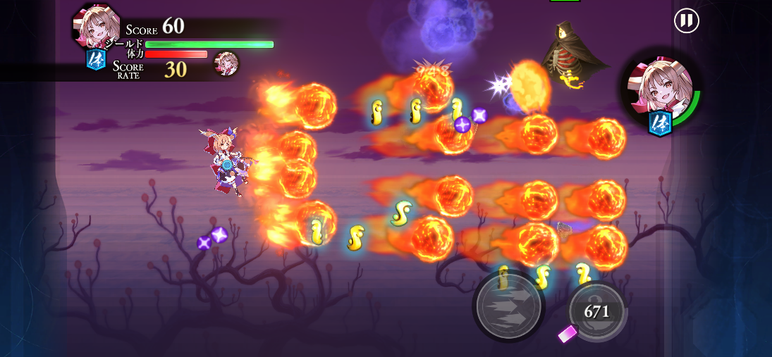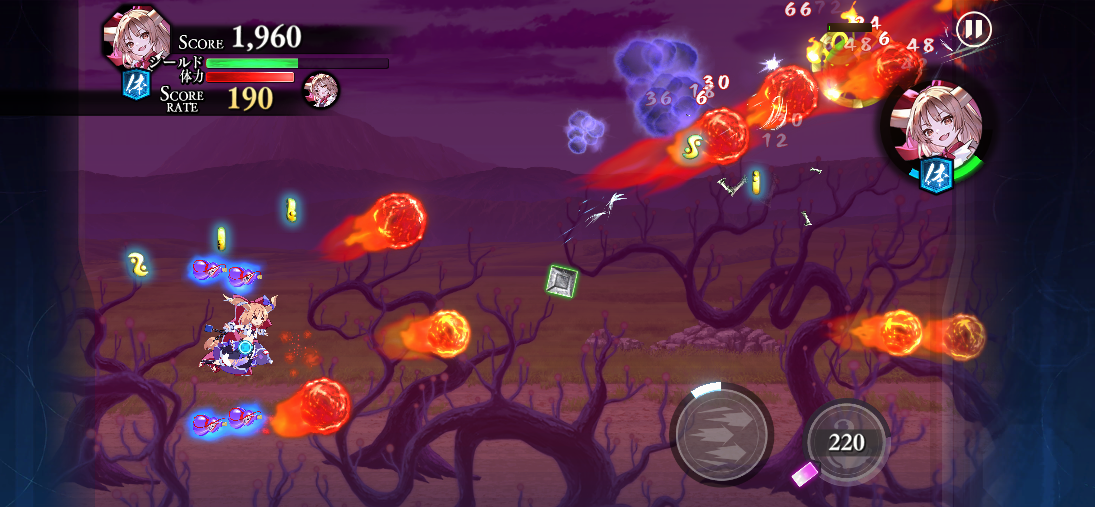 以自机为中心造成大范围高伤害+全屏范围低伤害。