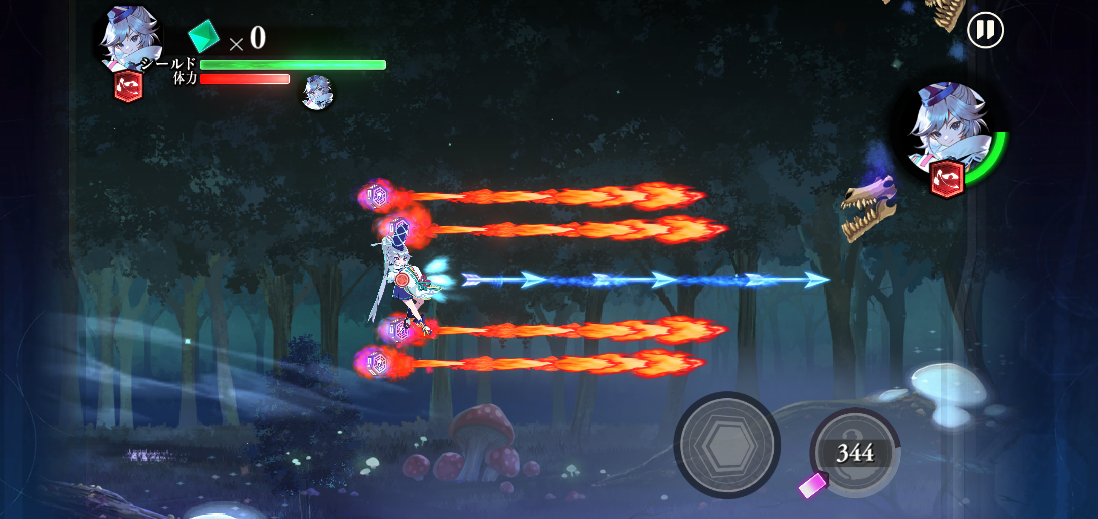 从角色侧面发射的攻击,击中敌人后会扩散的扩散型射击