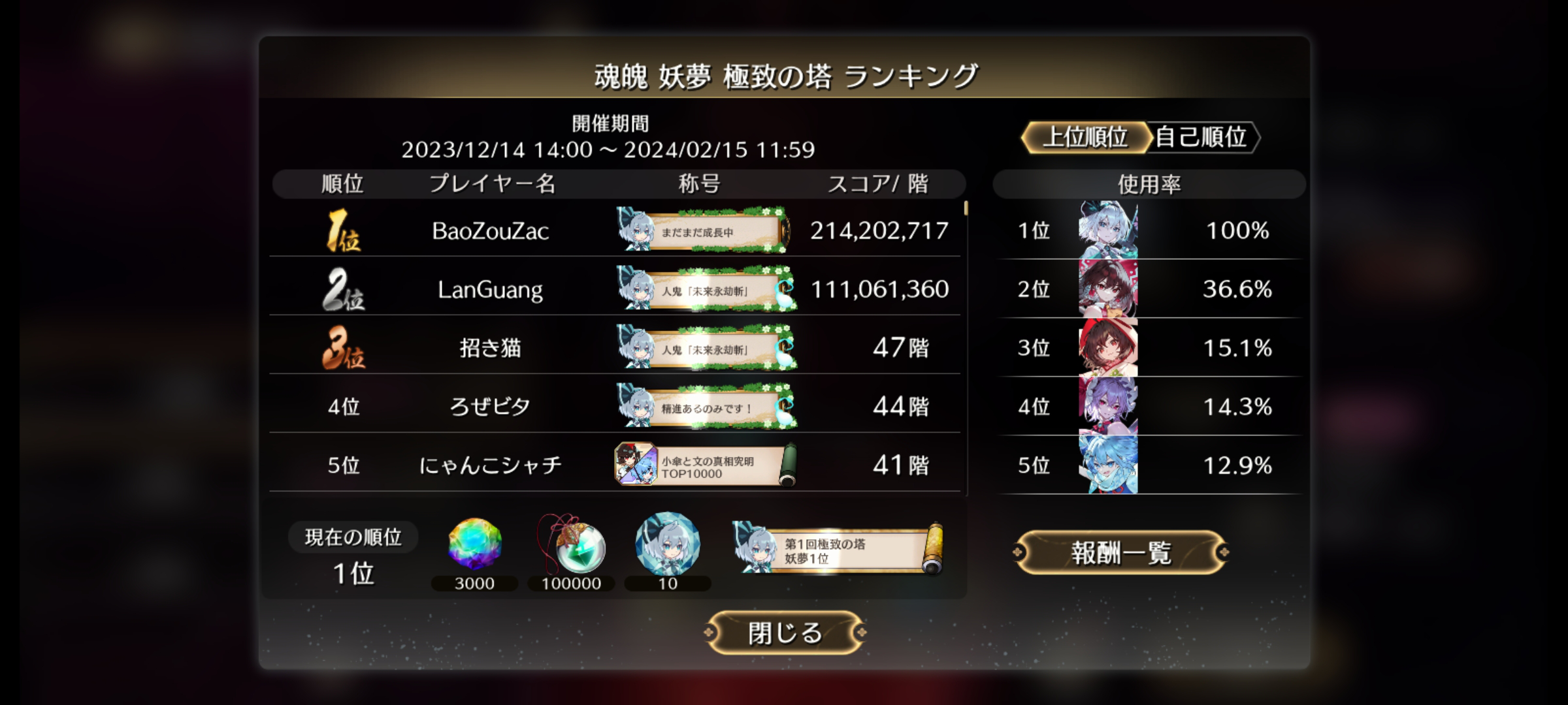 因此从策略上说,如果你冲着石头去,要卷排名,那么就选冷门或强度差的角色,例如布都之类,也可以选择自己喜欢的角色,至少能拿到一个对应的称号。