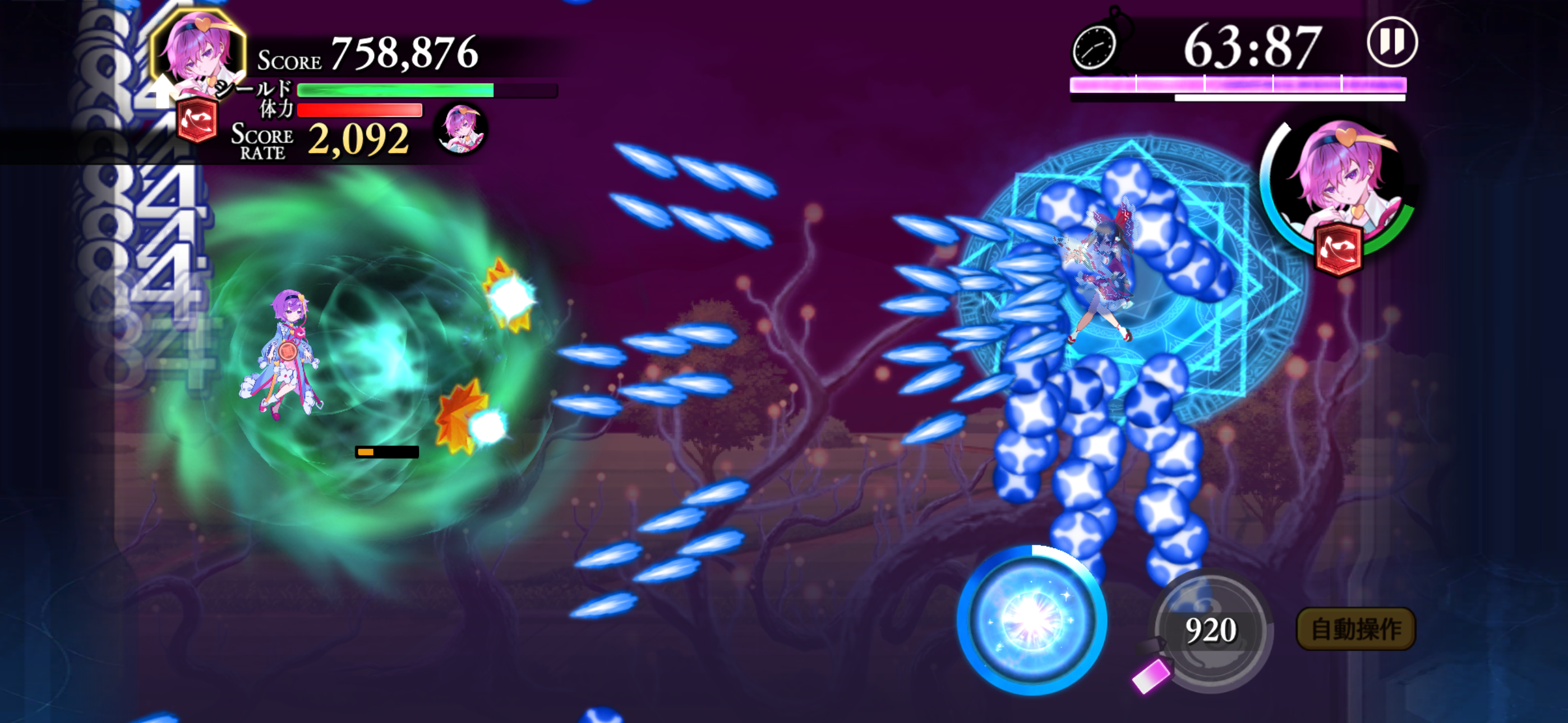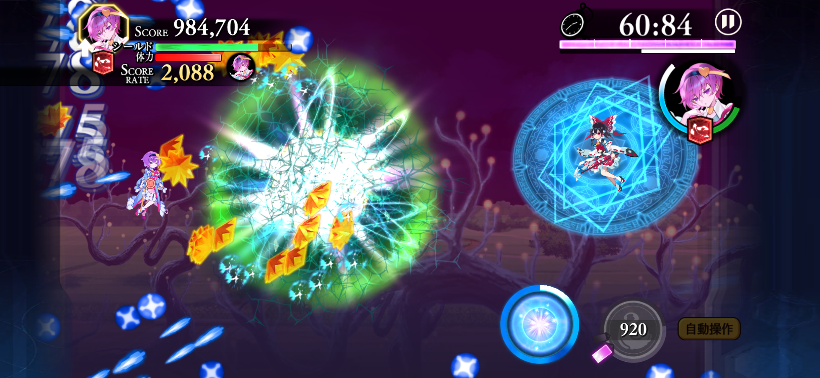 在前方展开敌弹转化领域,8秒后发射能摧毁敌弹的爆裂弹。爆炸范围与伤害值随转化子弹数量递增。