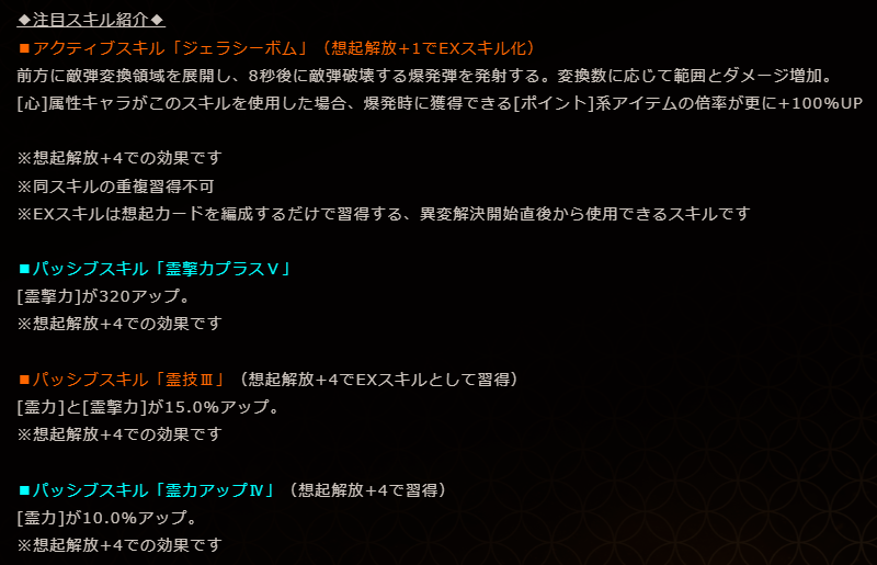 ※此为回忆解放+4阶段效果 ※不可重复习得相同技能