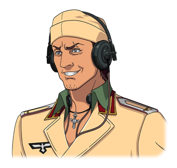 过去原本是个优秀的战车手,担任战车教练团的教官,但MS在吉翁国内得势时,并未通过MS的转科适性测验而自暴自弃,从此过着自甘坠落的生活。后来被分到第603技术实验队,负责运用斗狼,虽然这只是以实验为名义,其实是处分机体的举措,但他本人坚信这是东山再起的机会,企图彻底发挥自己战车兵的能力和斗狼的性能,以给放弃自己这类军种的高层一个好看。