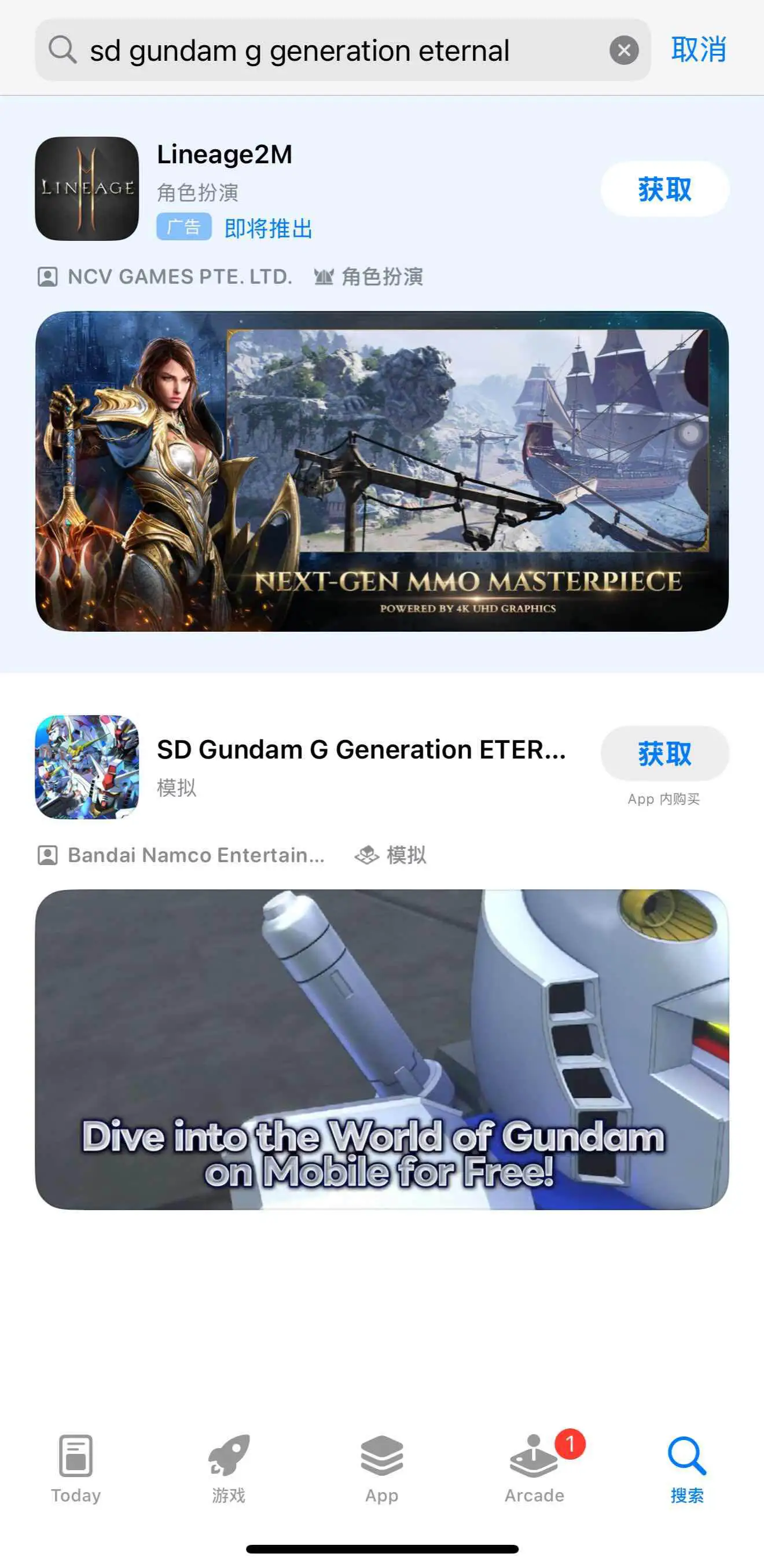 第三步:登录外区Apple ID后,搜索【sd gundam g generation eternal】即可下载游戏哦;完成后返回奇游,加速启动游戏即可。