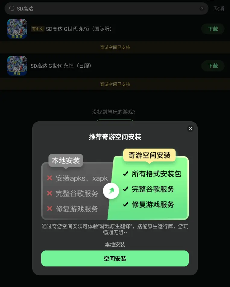 在奇游内搜索【SD 高达】即可下载游戏 推荐下载国际服因为有中文