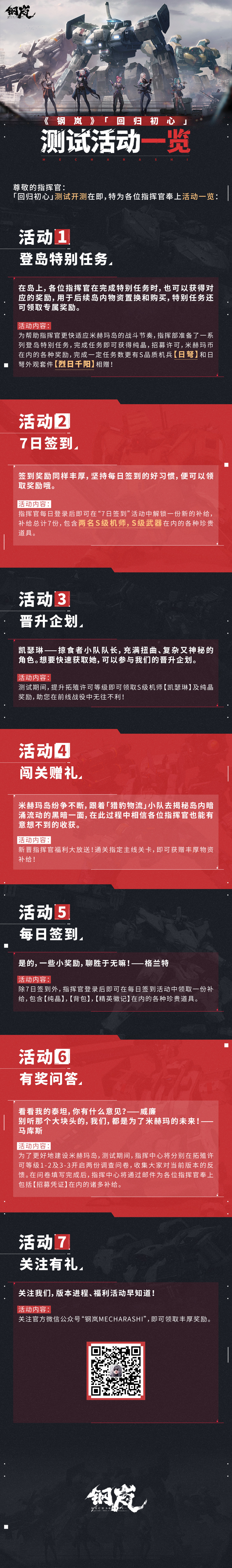 「回归初心」测试开测在即,特为各位指挥官奉上活动一览: