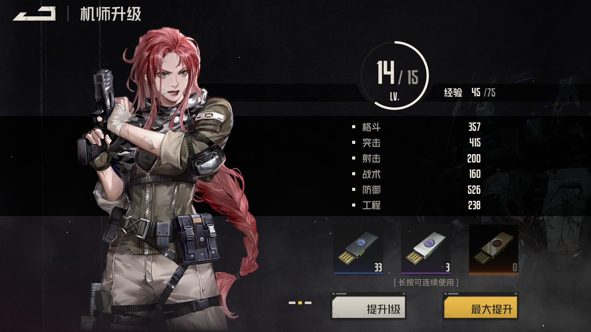 当然,这里也不推荐大家把等级升满,因为机师除了可以使用战术影像资料升级外,在通关后也会增加经验,毕竟要勤俭持家嘛~