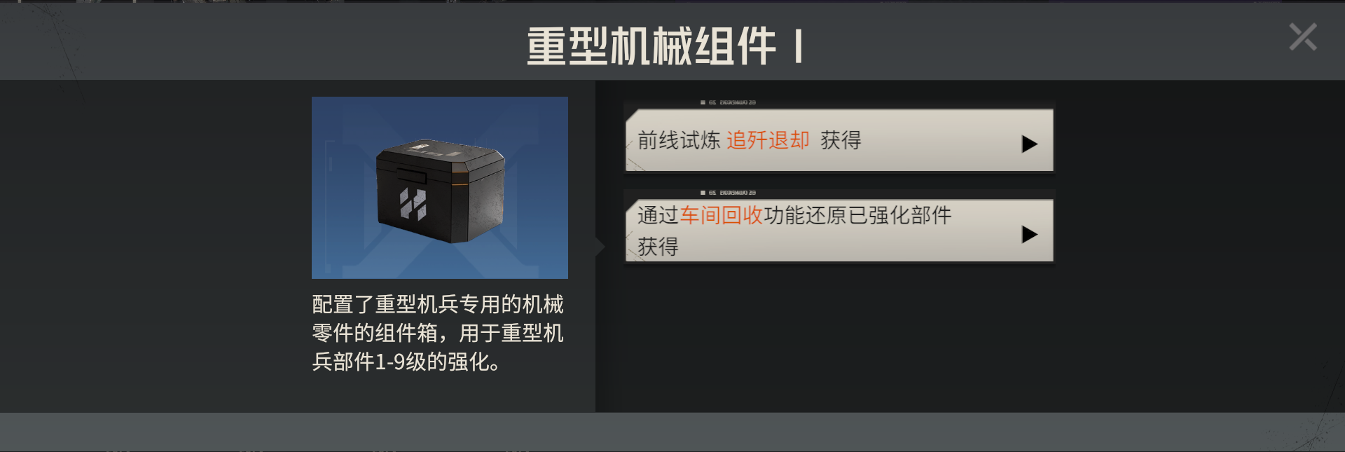 说完了机师,机兵咱们也不能落下呀。众所周知,机兵的部件有着等级,通过消耗各类机械组件(轻、中和重)可以提升,那么可以在哪获得呢?