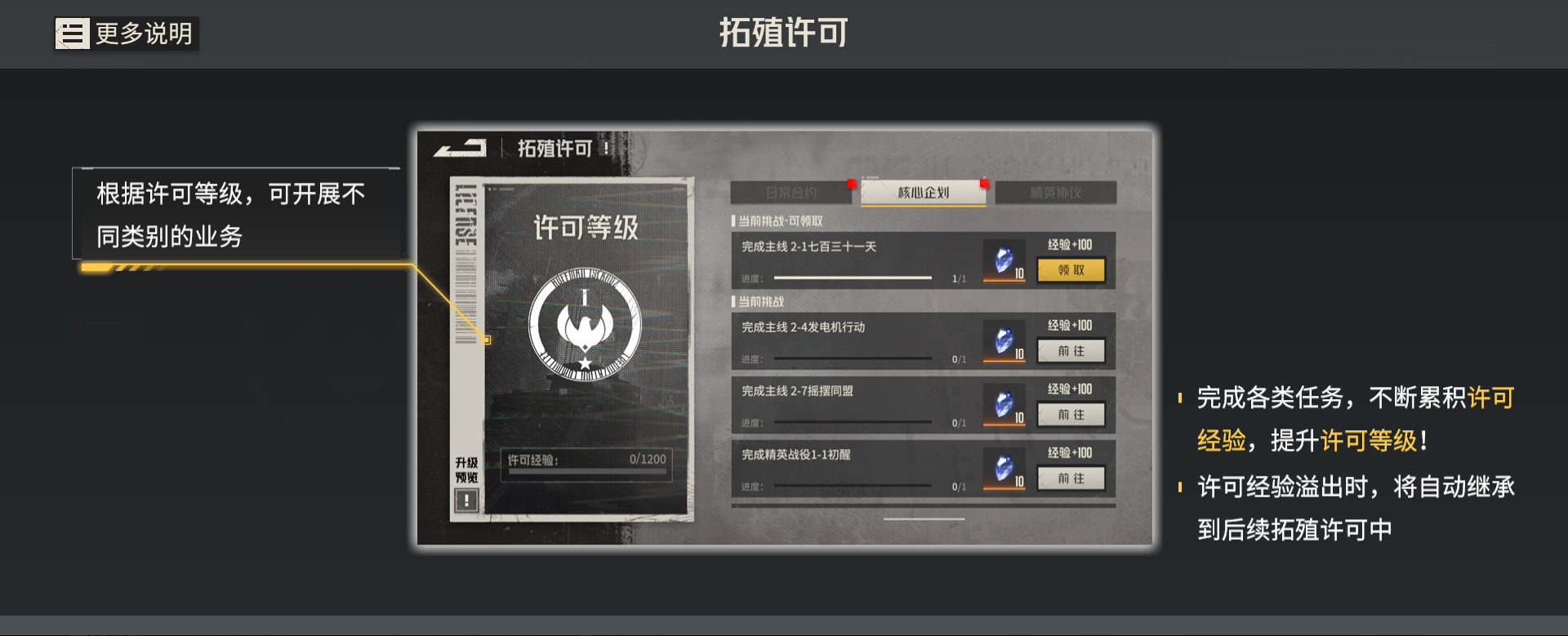 1.因为精英任务有着每日挑战次数,所以开荒的前两天可一定不要遗落,不然后面即使有了体力,没有次数也刷不了。