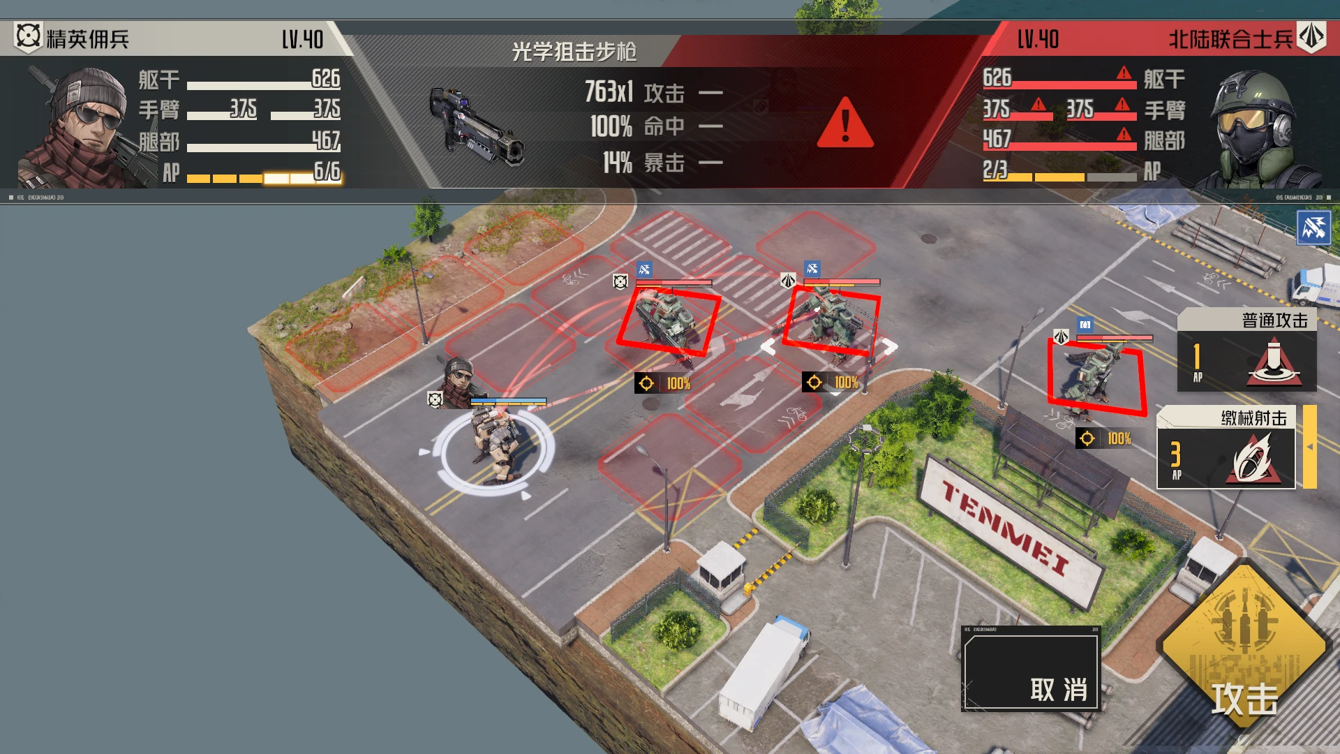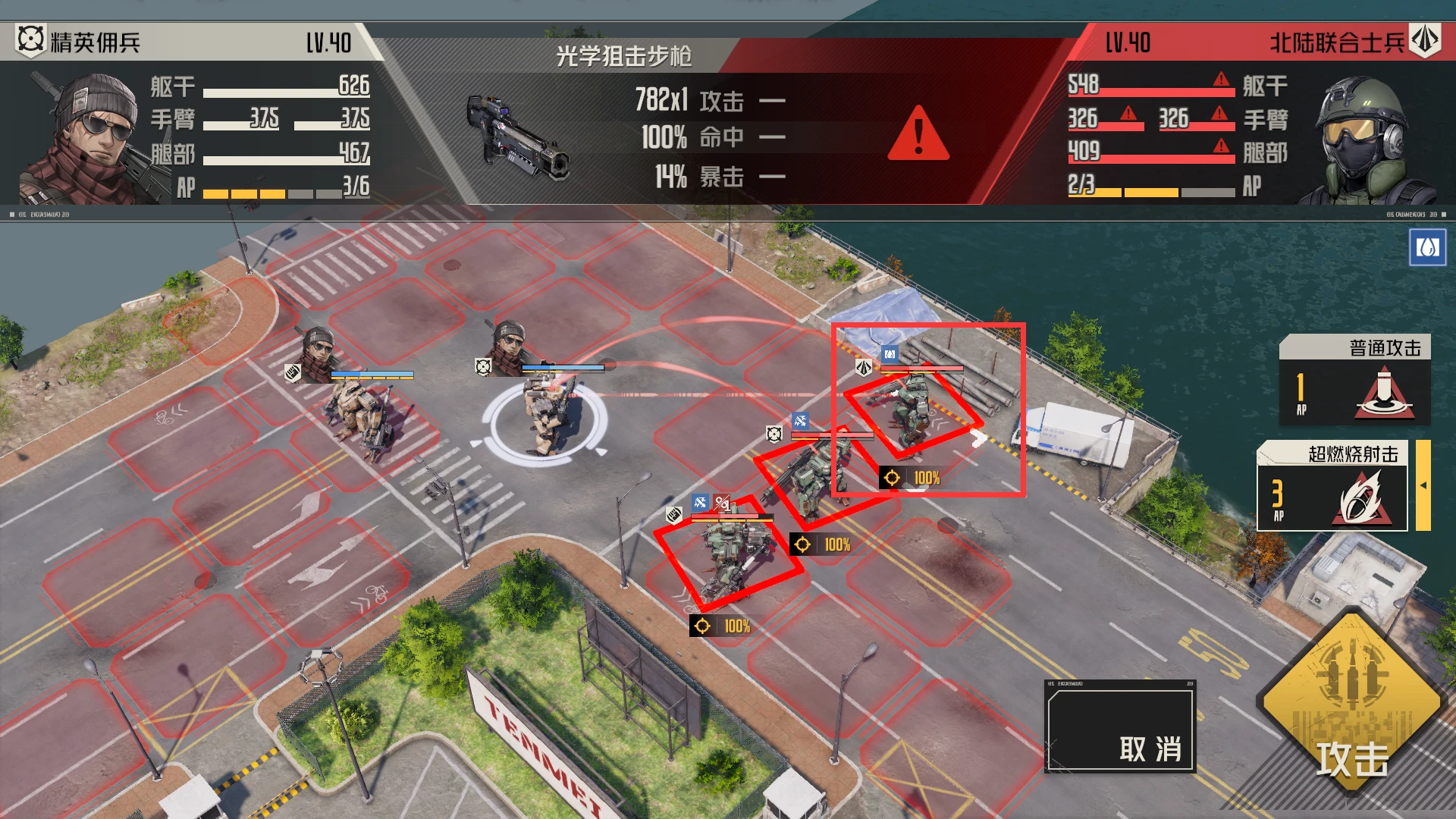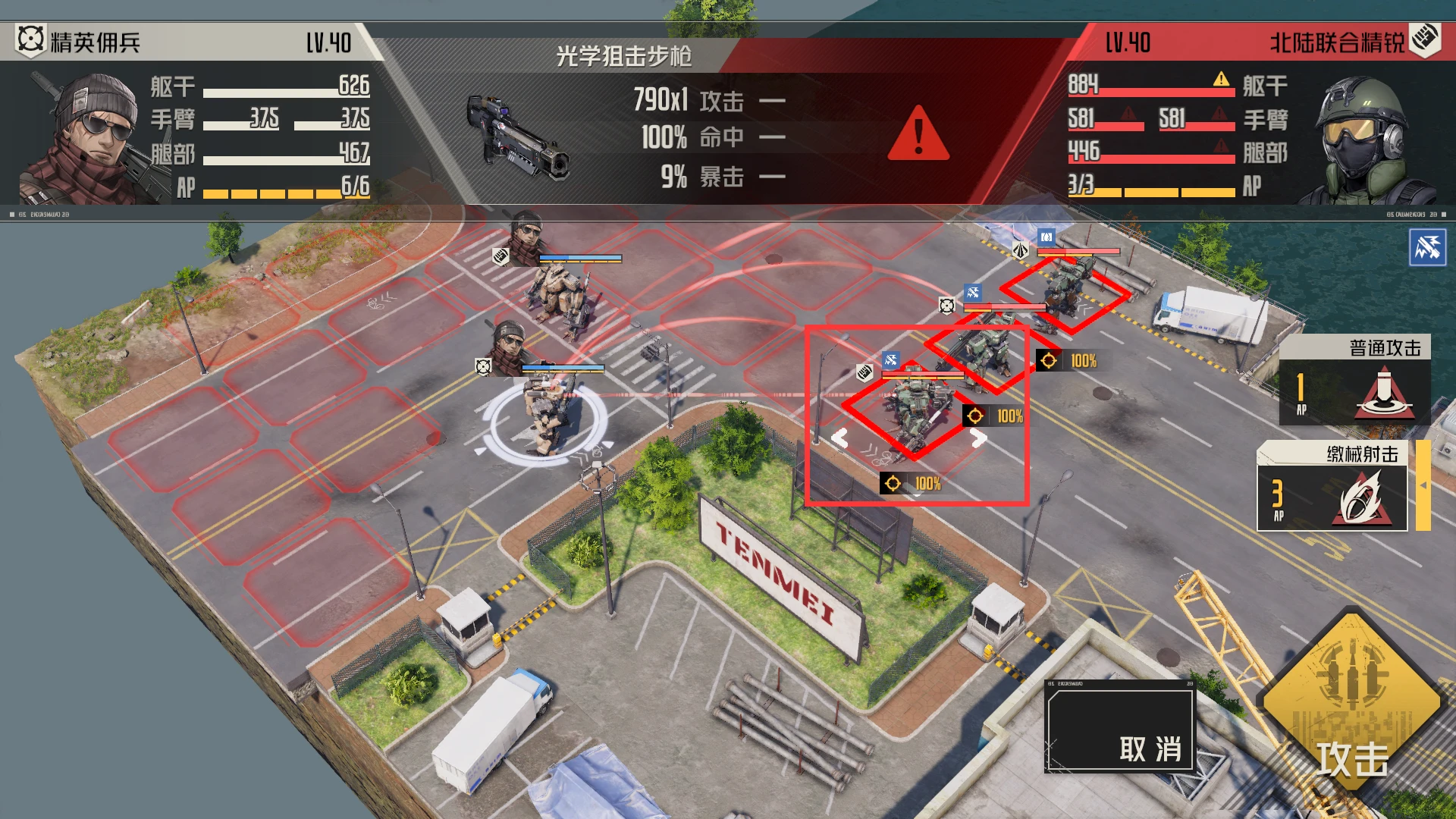 所以警戒射击的轻狙兵能够每回合多次对敌方机兵造成伤害,击溃敌方的阵线;战术兵凭借超远距离与两次攻击,既能打敌方阵线,又能很好地打击敌方的储能中心;轻狙和战术还是比较偏远程的定位,所以需要双枪机兵辅助。