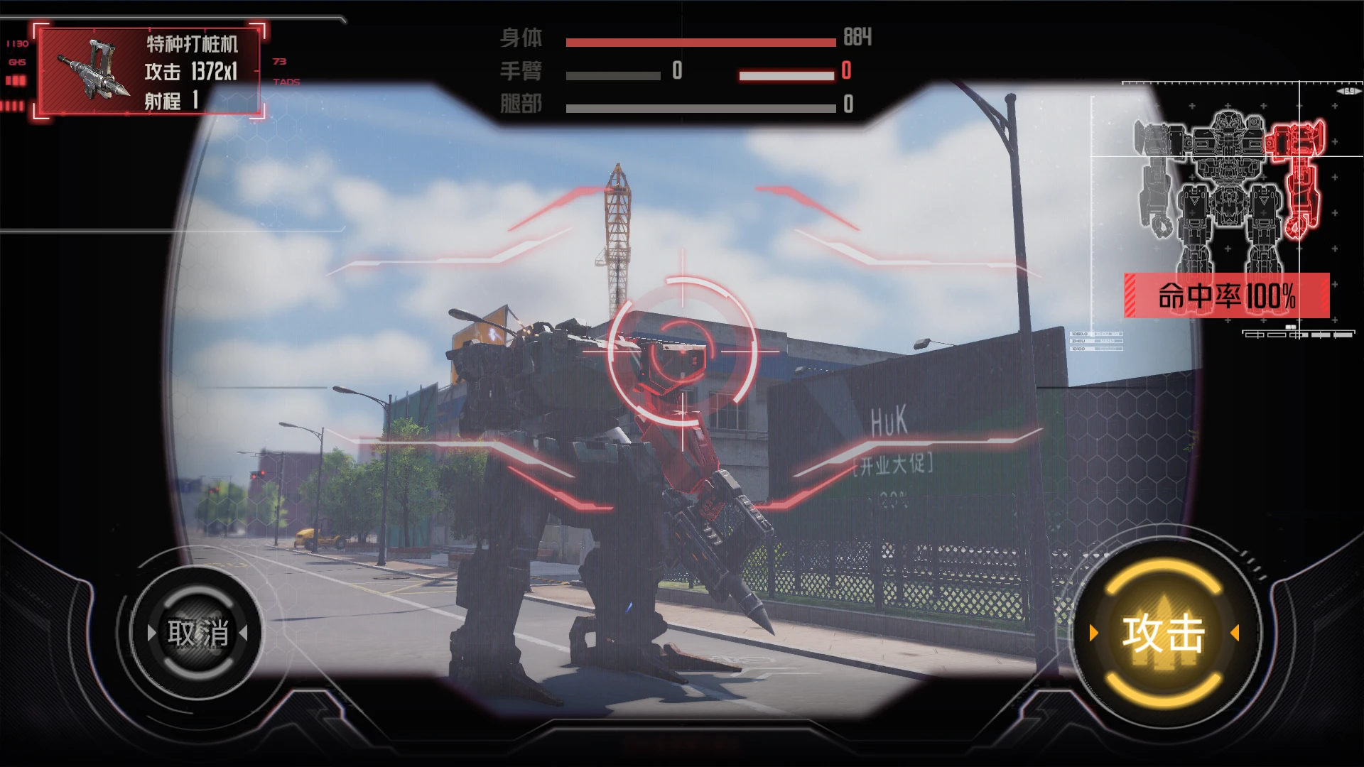 我方格斗机兵切换左手打桩机,对敌方狙击机兵使用躯干打击。