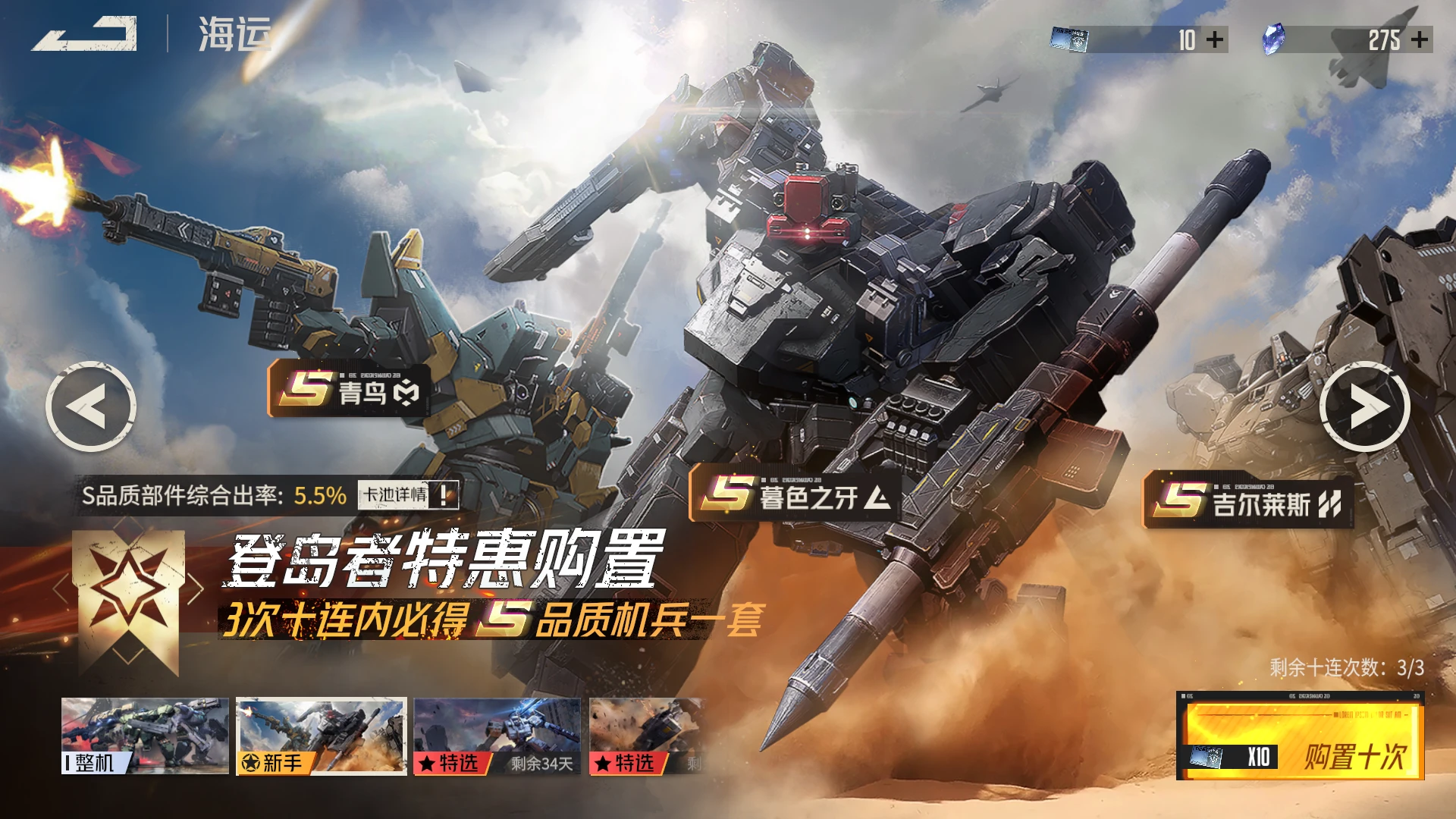 4. 1-4过关后解锁海运,身上的机兵招募券够两次十连。