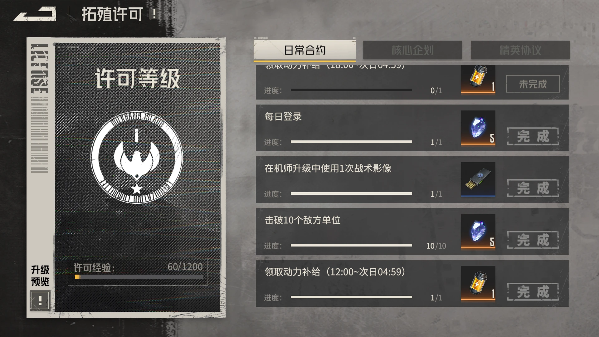 经过今天一天的努力,终于肝完了目前拓殖许可等级中的全部任务。