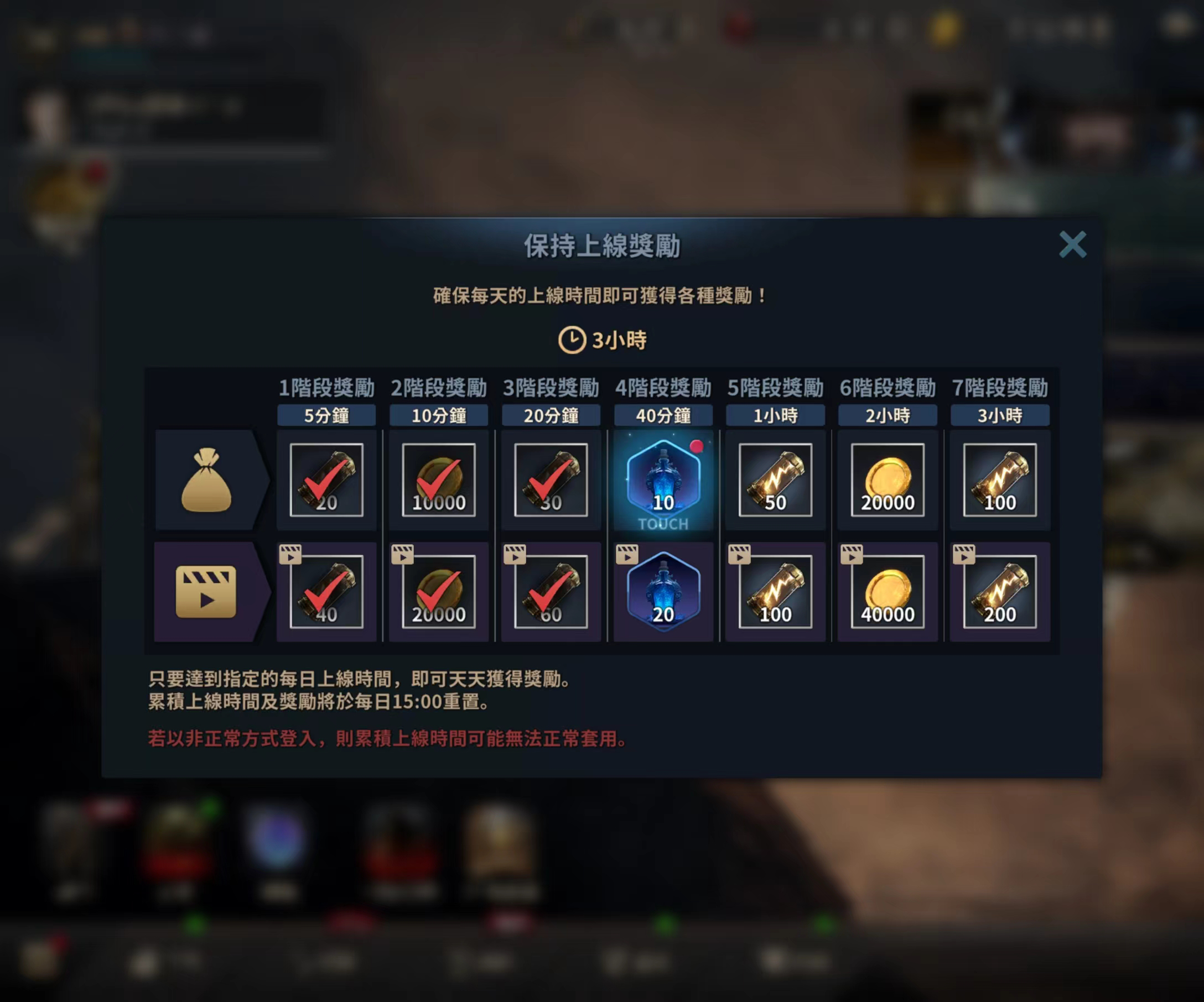 之前每日能获取的398体力不变,现在每4小时就能看一次广告获得50体力,如果你每4小时登陆看一次广告,一天能增加6x50=300体力,而且还有个每日持续在线时长任务,每日只要持续在线超过3小时,然后点7次广告任务,就能再获得600体力。398+300+600=1298,直接是原本体力的3倍不止。