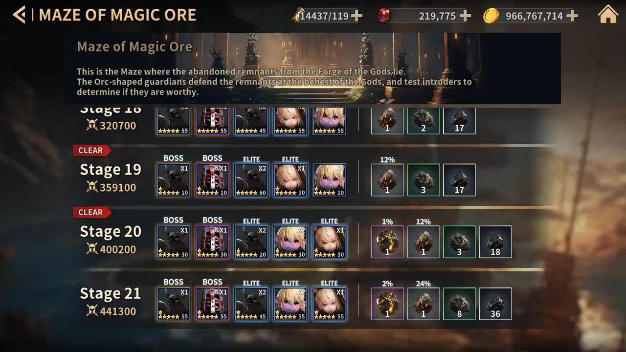 - 迷宫中获得的奖励将显示详细掉率。
