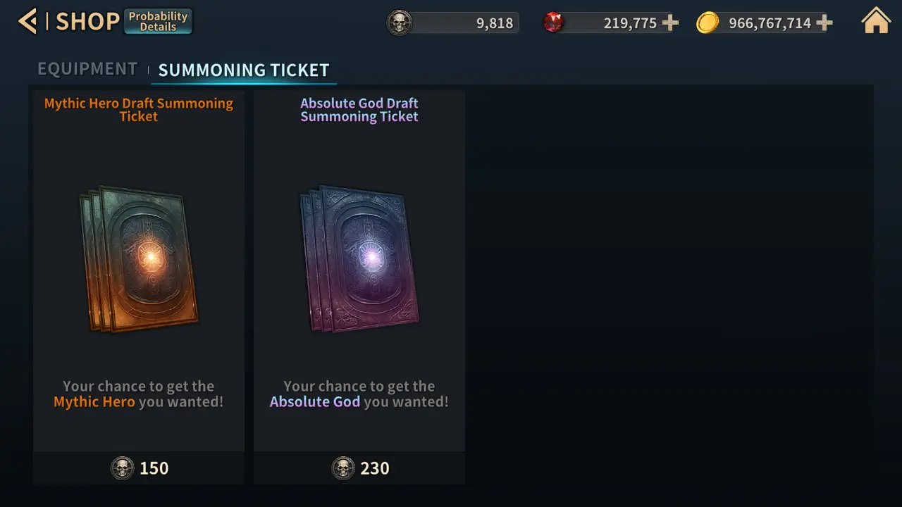4. 塔耳塔罗斯商店 塔耳塔罗斯商店新增了“召唤券”物品。 召唤券将随机显示3位英雄/神,你可以选择其中之一获得。