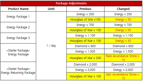 - 库存中存储的强化石销售价格将调整。