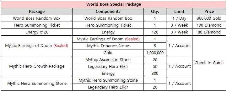 - 限量销售世界BOSS特别礼包
