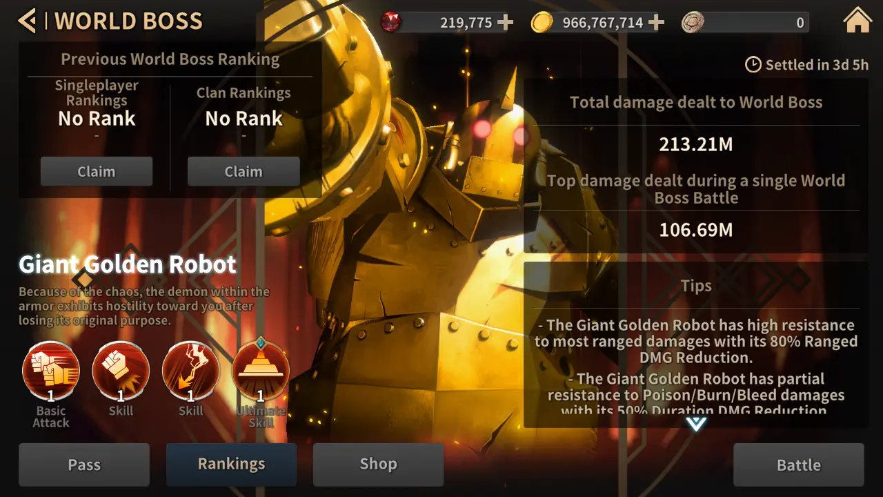 - 奖励将根据活动中的个人累积伤害排名发放。