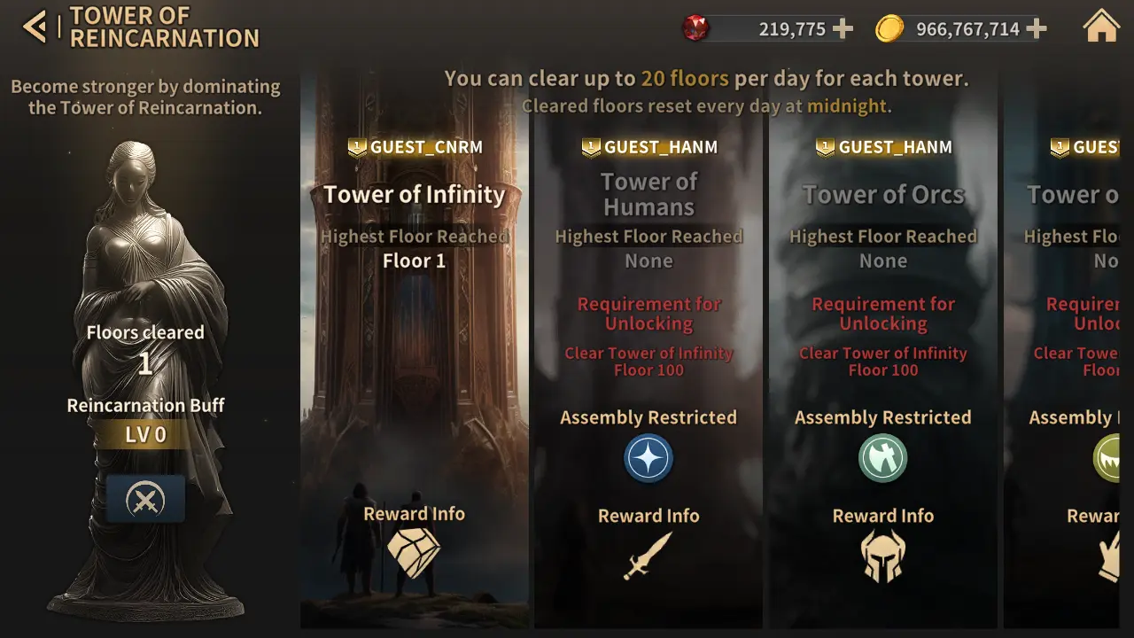 - 你可以通过点击重生之塔屏幕左侧的[重生增益]图标查看你的增益。