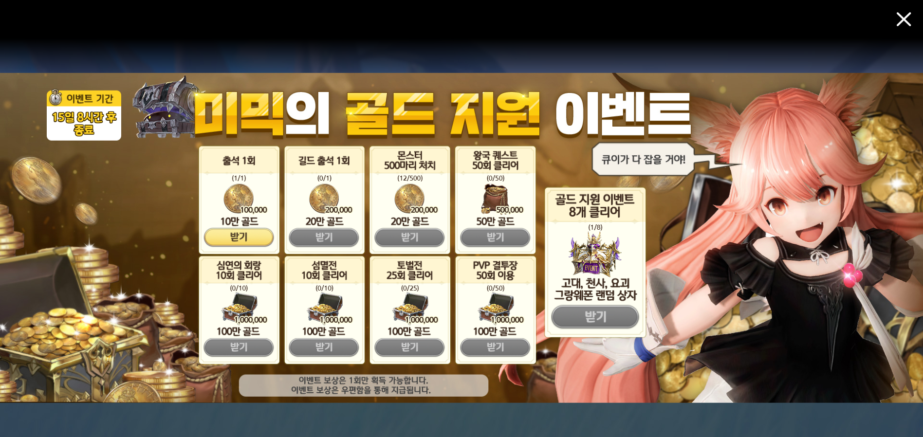 登入, 公會簽到, 擊殺500隻怪, 50次王國任