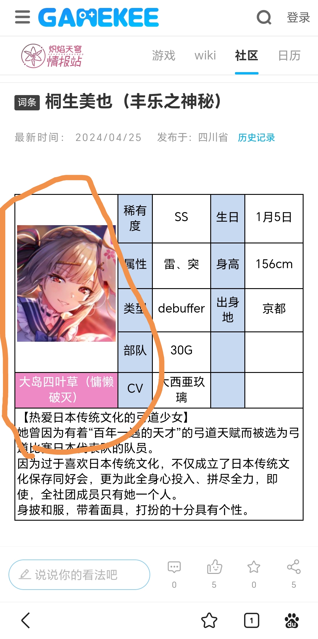 她曾因为有着“百年一遇的天才”的弓道天赋而被选为弓道比赛日本代表队的队员。
