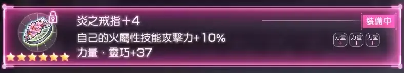 - 提供一个“技能攻击力上升”的被动技能加成(仅限六星戒指)。