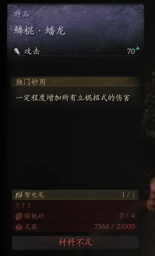 然后继续重复套路躲避技能等待倒地攻击,战斗的难度不高。打完后会解锁紫色武器的锻造方法和获得相应重要材料
