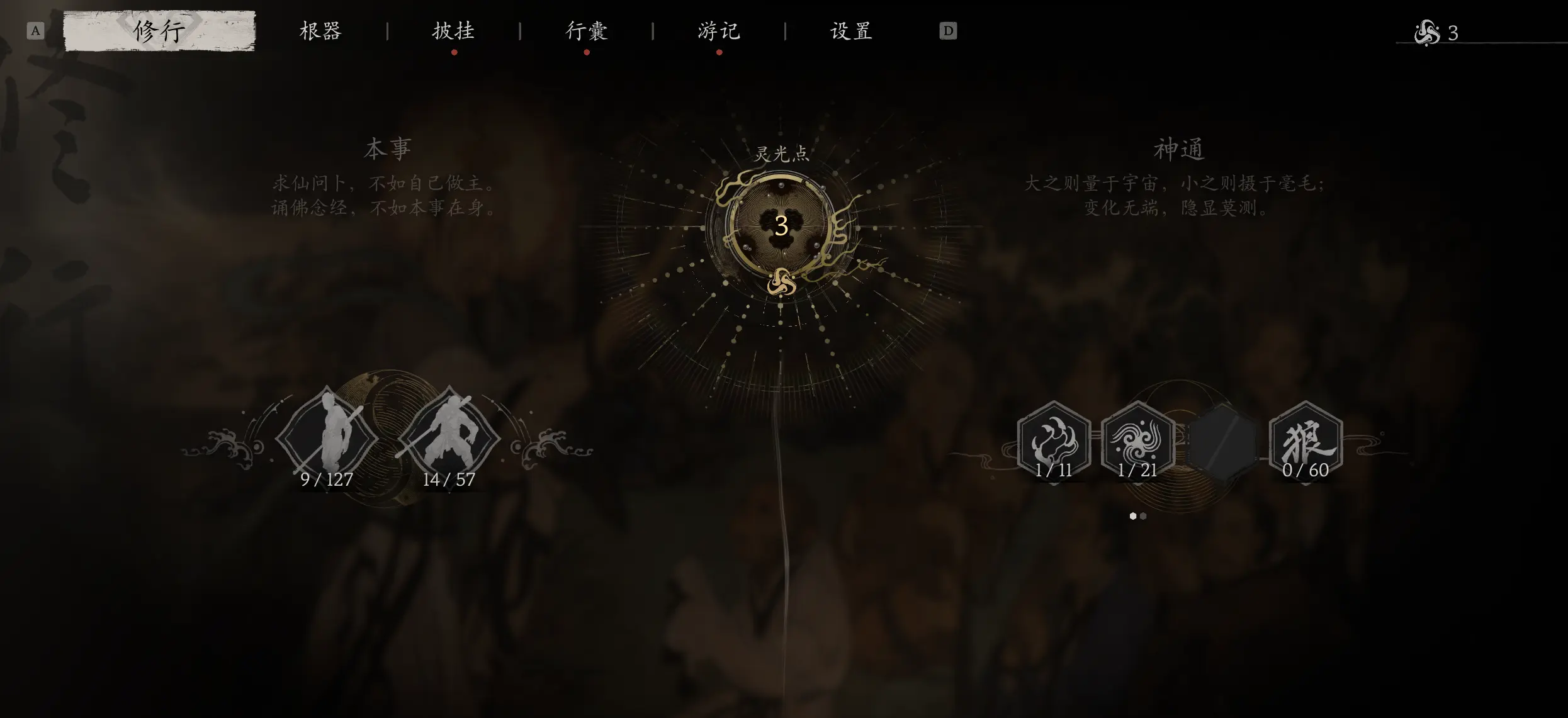 本事就是角色攻击时的基础操作,包括:根基(被动)和棍法(上文提到的三种棍法加点)