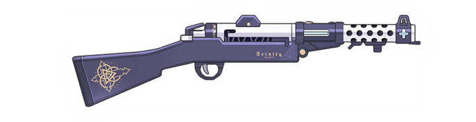 未花喜爱使用的冲锋枪,平平无奇的三一学院制造的冲锋枪,未花精心为其加增了装饰品,使其拥有了在黑暗中也能如星辉般闪耀的外观。无论何时何地,这件武器都会为了未花而大展身手。(在黑暗中也能如星辉般闪耀的外观?爆头指示器!)