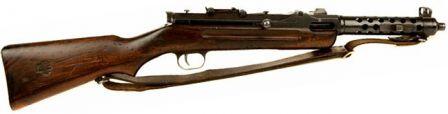 原型是英国的兰彻斯特冲锋枪(Mk Ⅰ*),之前很多人说这是MP34或是MP28,其实是不对的。兰彻斯特冲锋枪枪口有刺刀座,拉机柄和机匣后部也与德国的冲锋枪略有区别。