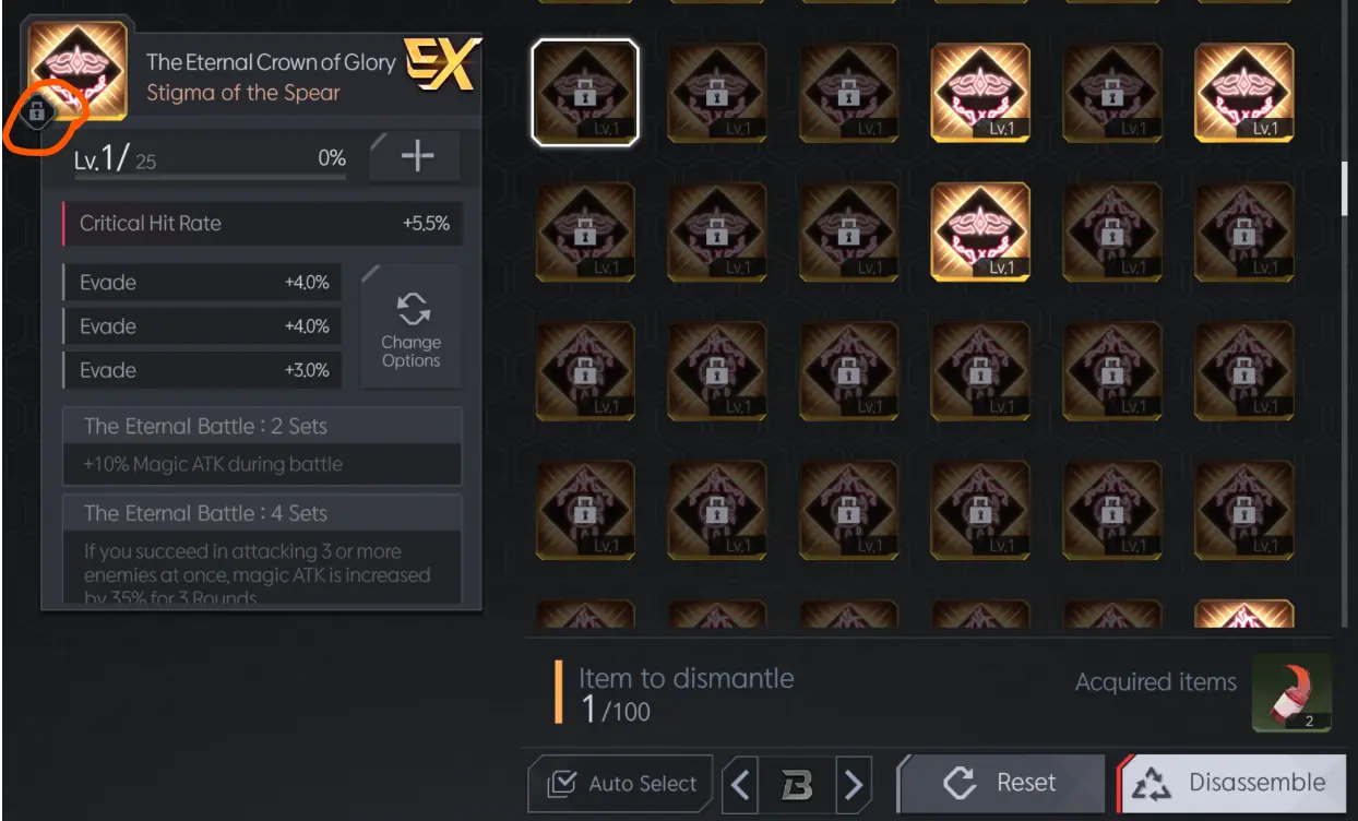 一些双重复且都是最大值副词条,记得锁一下,未来可能有用。例如玛哈莉需要12个暴击伤害,以后可能还要12个暴击率、12个移速等等。