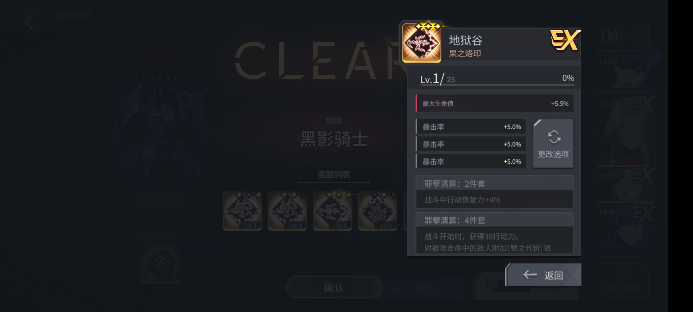 四件套效果:战斗开始时获得 30 AP。攻击命中后,对目标造成【罪孽的代价】。