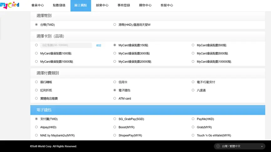 线上购点>选择TWD>选择电子钱包>选择支付宝