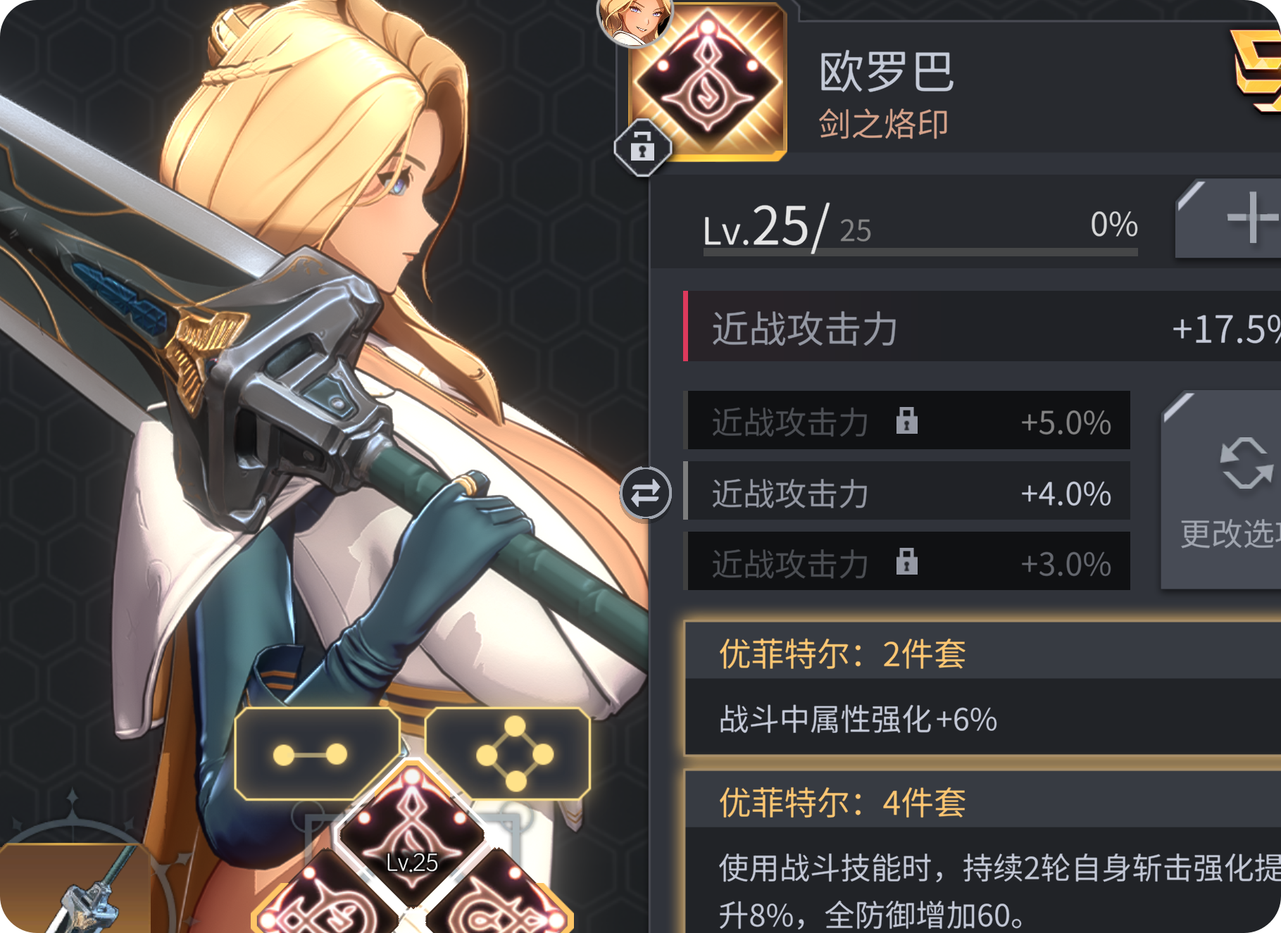 曾经特种作战商店专属的木星专属圣痕讨伐-变质的奥尔克射手产出的圣痕优菲特尔完美适配奥利维亚(需要通关剧情里的珠哈活动普通难度解锁)。副词条堆12个5%近战攻击力。暴击率、爆伤对其0提升。