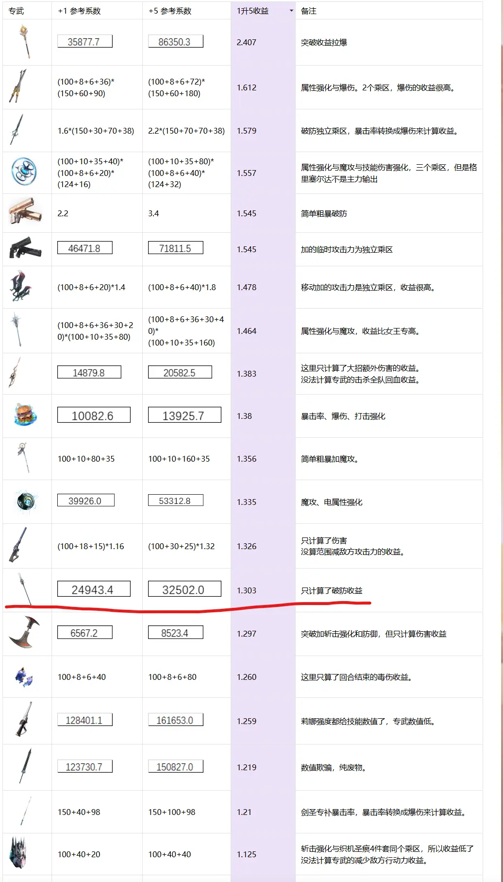 专武只计算破防的提升,1专突破5专提升1.303