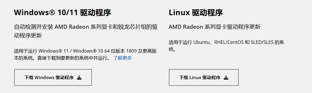 AMD显卡:访问 处理器和显卡驱动程序及支持 下载最新驱动。