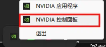 ① 右键任务栏英伟达图标,打开“NVIDIA控制面板”