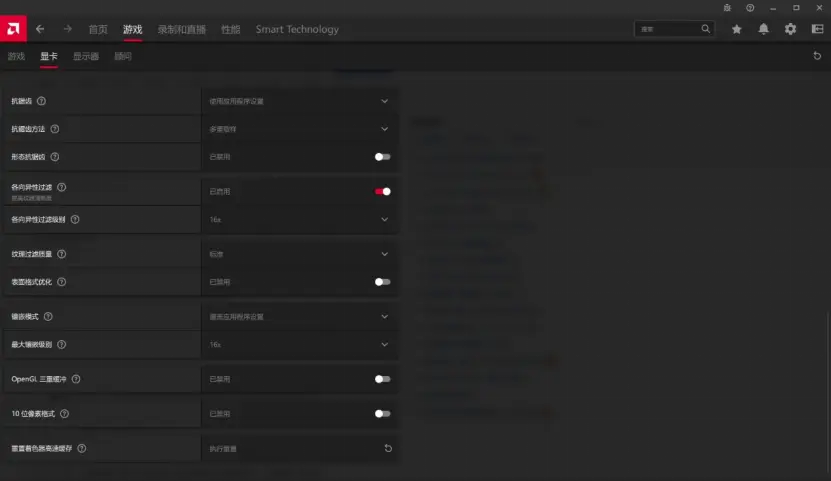 10、各项异性过滤:纹理清晰度,建议开启,级别“8x及以上”