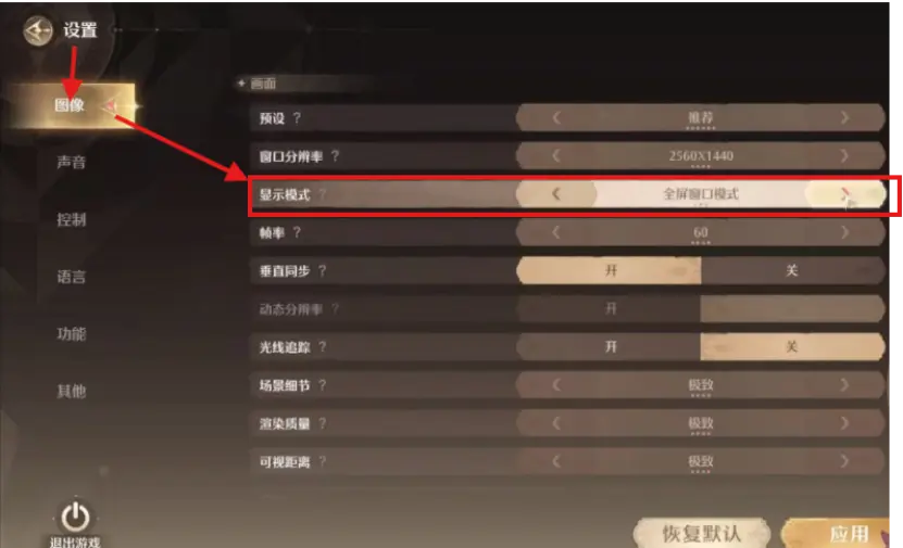 在“画面设置”中,找到“屏幕模式”,支持全屏、窗口化、无边框窗口。若需频繁切换应用,建议使用“无边框窗口”模式。若想获得最佳游戏性能,建议使用“全屏”模式。