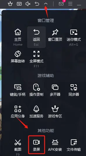 展开模拟器右上角菜单栏即可使用截图功能【默认快捷键F9】与录屏功能,还能设置录屏效果噢!
