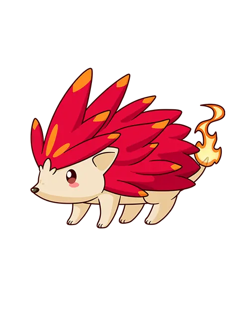 浑身散发高温的红色刺猬,生活在熔岩地心附近。尾巴上的火焰多数用于外出寻找食物时照明,主要食物是水果,不会轻易攻击人类。
