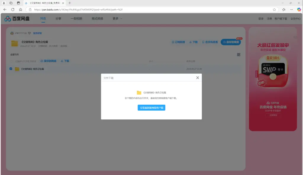 为了方便浏览及下载特定文件,所以使用文件夹把文件分类,故无法从网页端批量下载,需转存后下载百度网盘客户端才能解除此限制
