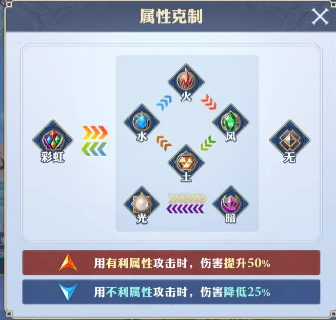 需要注意的有,主要是属性克制,水克制火、火克制风、风克制土,土克制水是比较主要的属性克制关系,通过属性克制和某些格兰武器提供的效果抵扣可以让战斗变得更加轻松。