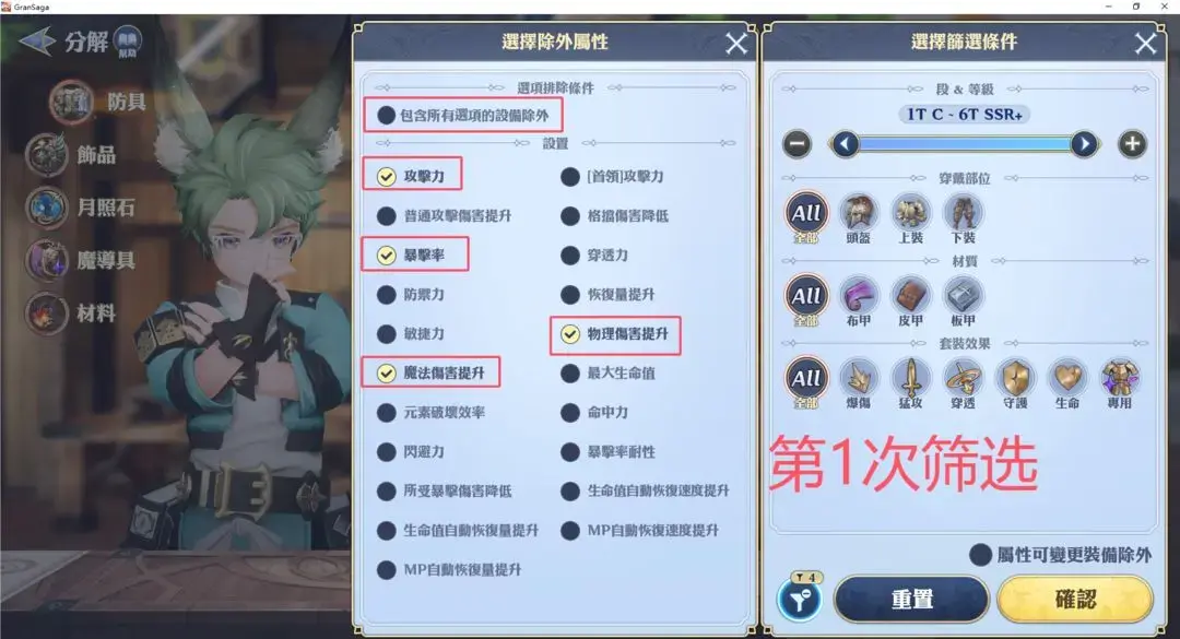 装备养成路线简单概况为,打困难,刷讨伐,低概率掉落ssr,保底掉落sr...sr筛选出想要的词条,再继承到ssr装备