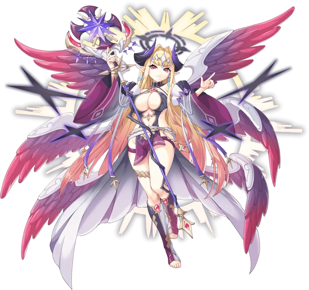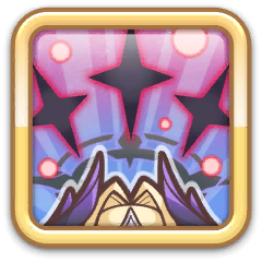 深渊之明星 | 自身单位受到相当于当前 HP 10% 的固定伤害。对敌方全体造成 0.75 倍范围伤害,并使敌方普通攻击射程 - 3(持续 1 回合)。此外,为敌方附加「支配者的威光(战斗前,魔法防御 - 40%)」效果(持续 3 回合)。 自身单位获得以下增益: 魔法 + 35%、抗性 + 35%、范围伤害耐性 + 35%(持续 4 回合); 「六翼的威光(除最大 HP 外的所有属性 + 25%)」效果(持续 5 回合)。 使用技能后,可以再次行动。 强化后(誓约): 自身单位受到相当于当前 HP 10% 的固定伤害。对敌方全体造成 0.8 倍范围伤害,并使敌方普通攻击射程 - 4(持续 1 回合)。此外,为敌方附加「支配者的威光(战斗前,魔法防御 - 45%)」效果(持续 3 回合)。 自身单位获得以下增益: 魔法 + 40%、抗性 + 40%、范围伤害耐性 + 40%(持续 4 回合); 「六翼的威光(除最大 HP 外的所有属性 + 25%)」效果(持续 5 回合)。 使用技能后,可以再次行动。 | ||||