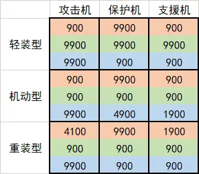 表格中也展示了一些并不是最优但使用资源量明显下降的公式,如重装攻击900/900/9900 (19%几率),机动攻击900/900/4000(31%几率),轻装攻击900/4200/3900 (23%几率),但部分公式数据量较少,不一定有代表性,感兴趣的玩家请自行寻找。